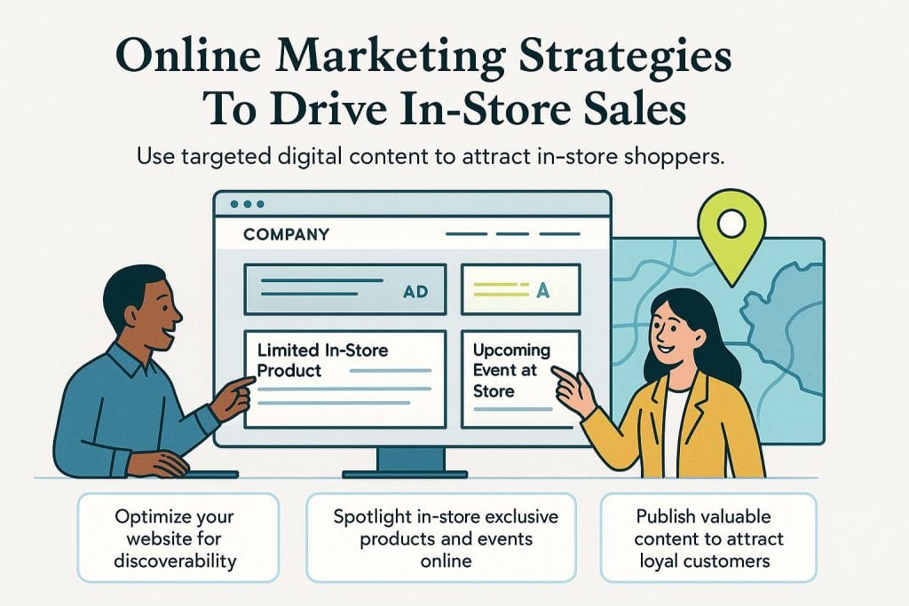 Small businesses with brick-and-mortar stores can lean into this trend by focusing on their online marketing efforts. Here’s how you can increase your in-store sales with online marketing.