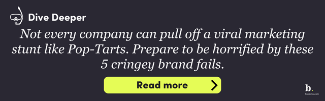 “For 60 years, Pop-Tarts has sacrificed everything for flavor,” Pop-Tarts’ Senior Director of Marketing Heidi Ray told Marketing Dive, “and our mascot … wasn’t going to be any different.” She also told NPR, “Campaigns that earn both coverage and conversation have a disproportionate business impact,” likening the sugary slaughter — which went viral — to “a major.”